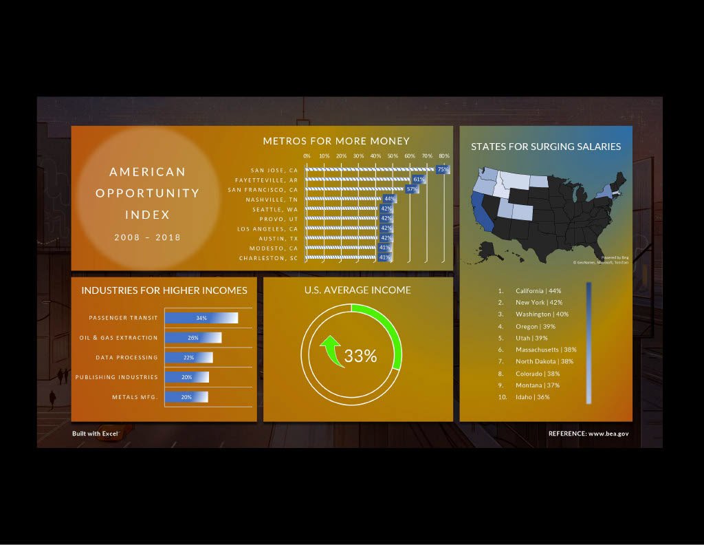 With so much economic uncertainty, where does someone invest their time and energy to better ensure a bright future? Through use of Bureau of Economic Analysis data, the American Opportunity Index narrows down the industries and locations that have displayed the fastest rates of economic growth over the past decade.